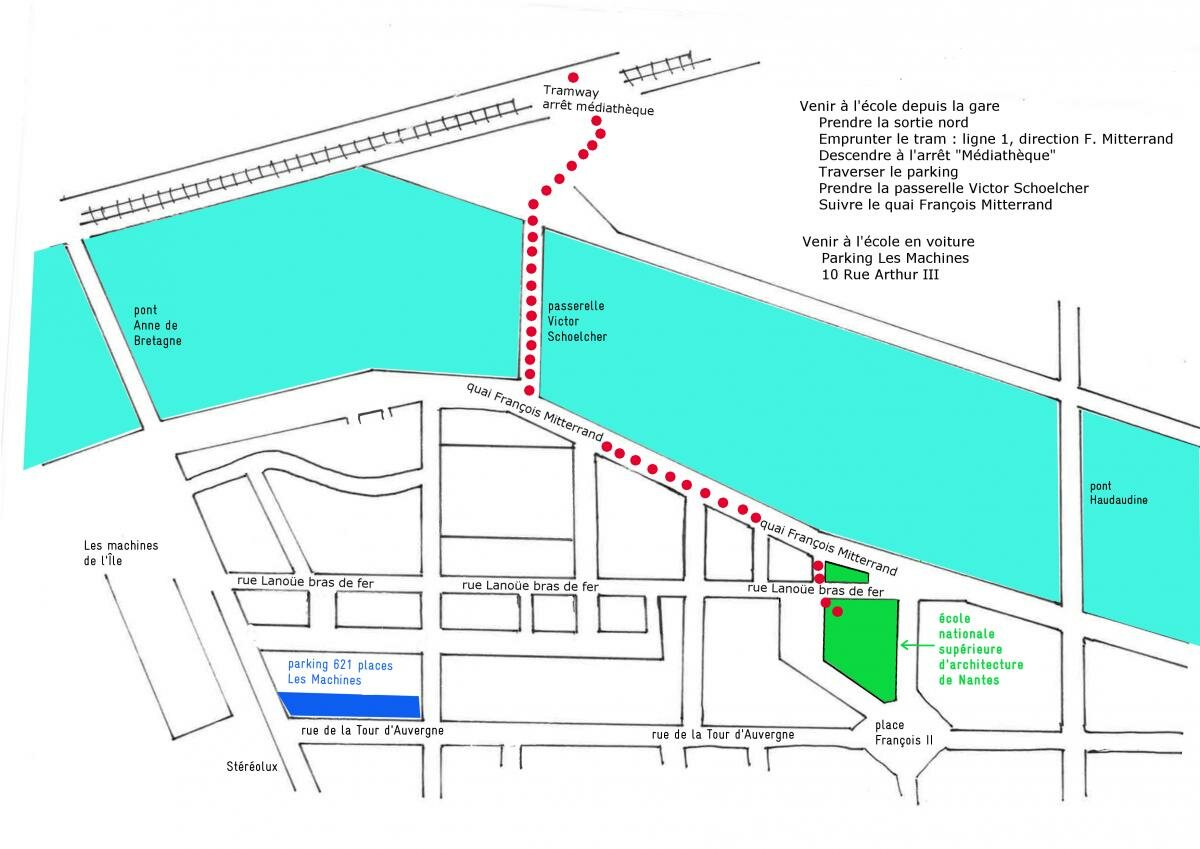 - Traverser le parking, prendre la passerelle Victor Schoelcher, suivre le quai François Mitterrand.